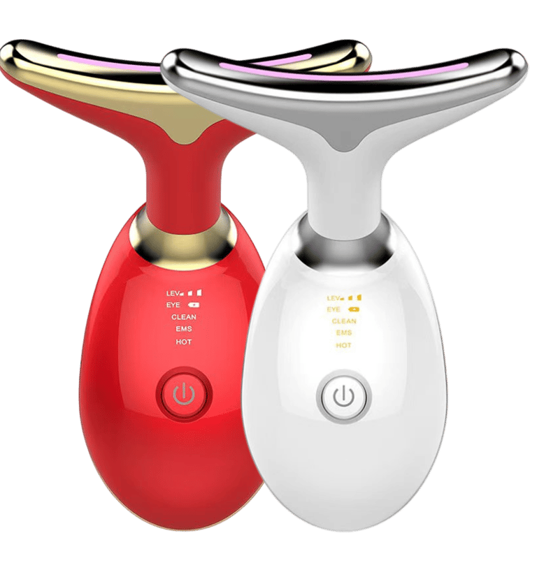 EMS microcurrent massage energizes skin cells and reduces neck lines effectively.